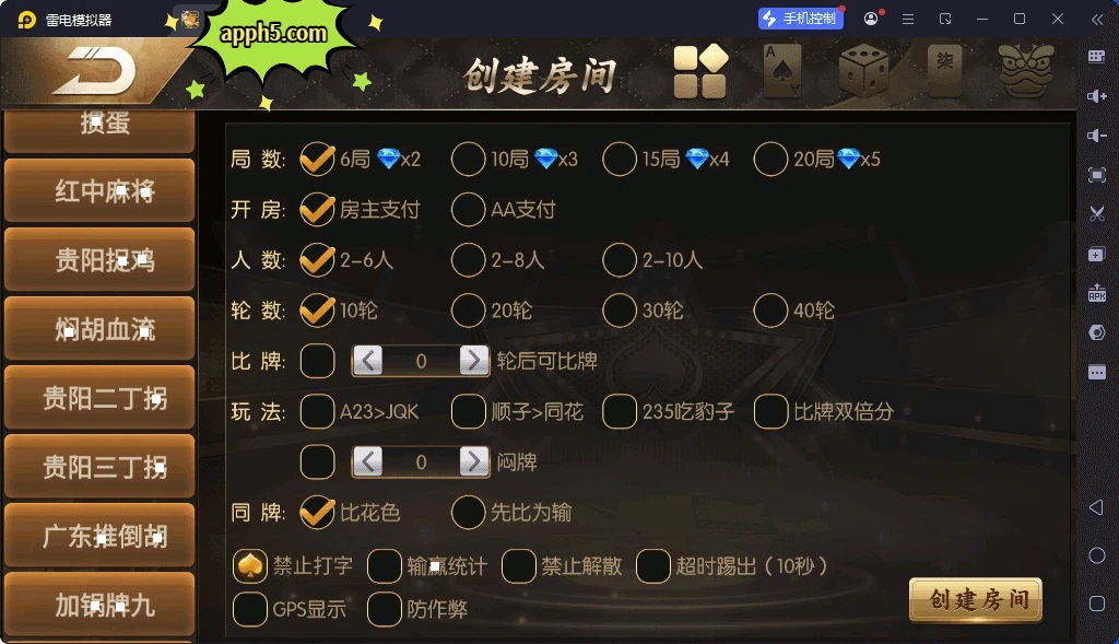 Ma将:血战Ma将、加锅Tui筒子、泉州Ma将、红中Ma将、贵阳捉Ji、闷Hu血Liu、贵阳二Ding拐